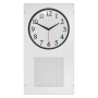 The frame with grille is made to accept an 8-inch speaker, 12-inch analog clock, and recessed enclosure. It can be mounted to a wall horizontally or vertically.