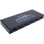 The Ocean Matrix OMX-06HMHM0002 HDMI 2.0 splitter distributes HDMI video and audio from a singular source such as a camera, Blu-Ray, or digital signage player, to up to 4 HDMI displays simultaneously, with no signal degradation or loss. The unit supports video resolutions up to 4K @60Hz as well as the latest HDMI digital audio formats, is equipped with built-in EDID management, and supports mixed 4K & 1080p display outputs.