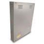 The Dukane MCS350 is available in two models: a wall-mount version and floor rack version. The wall-mount version can accommodate up to four switching cards (64 remote stations), a 24Vdc power supply, and a 60-watt power amplifier. The floor rack version is an upright 19-inch (48.3 cm) rack unit that houses the Central Control Unit as well as an optional AM-FM tuner/cassette player (with or without preamp).