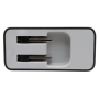 The dual USB travel charger is easy to carry in your purse, suitcase, backpack or laptop bag. The NEMA 1-15P plug folds into the unit when not in use to shield it from damage and prevent it from snagging or scratching your bags contents.